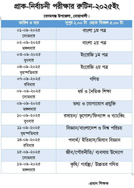 প্রাক-নির্বাচনী পরীক্ষা ২০২৫